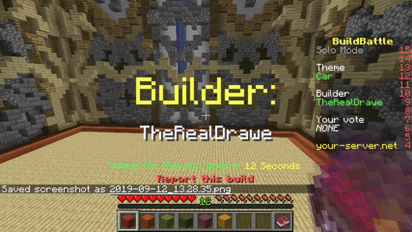BuildBattle is a building styled Minecraft minigame where players have to build something relevant to specified theme for a certain amount of time.