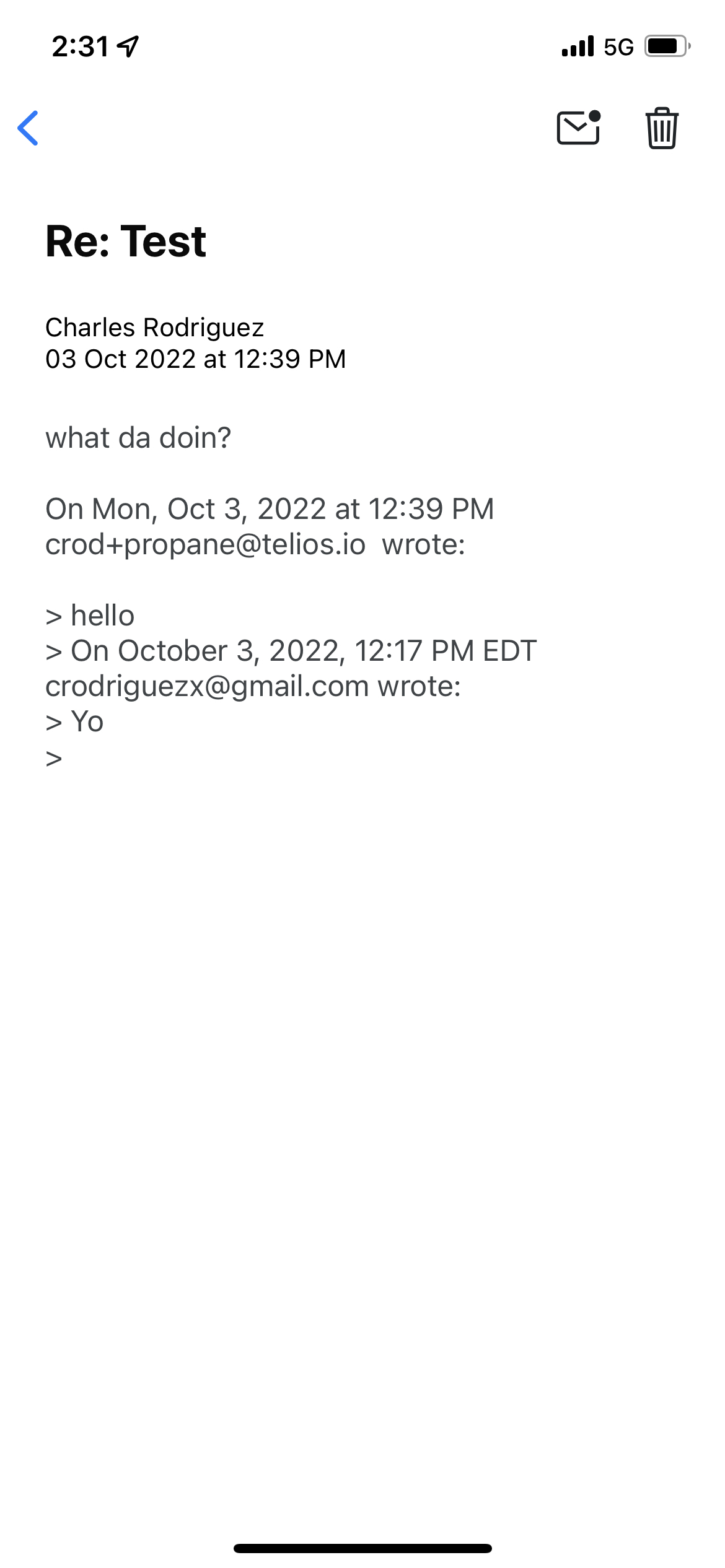- Open one of the email threads