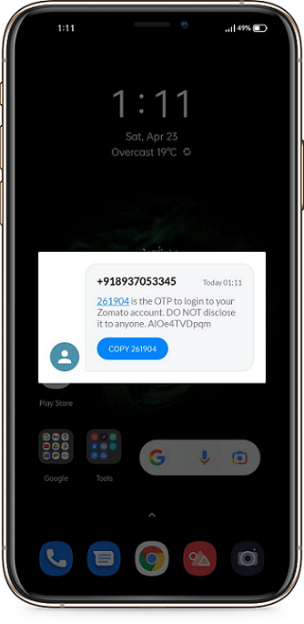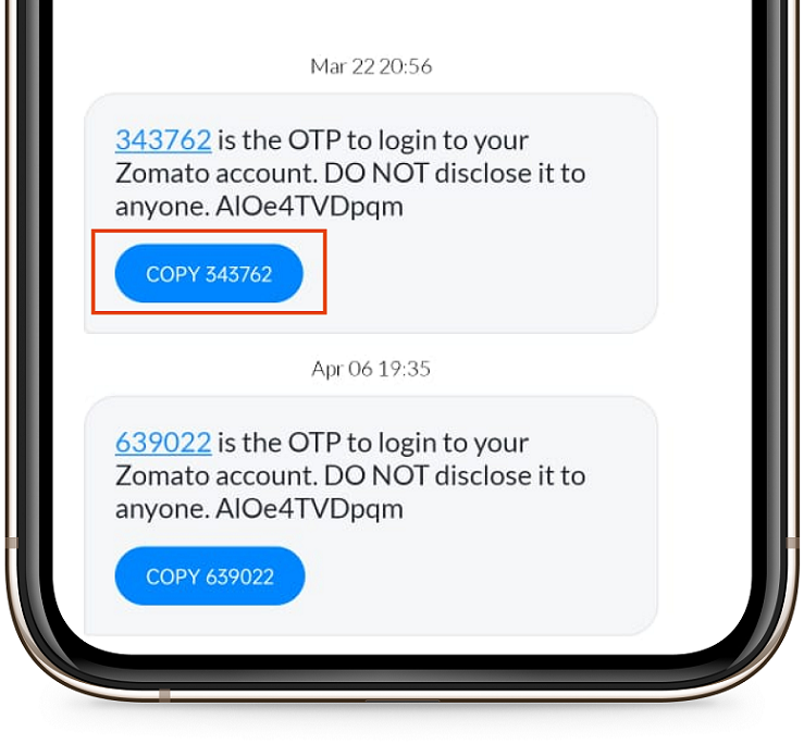 Every time the user receives some notification, the broadcast receiver registers it and then sends our own app notification which is shown as a default notification with action to copy the OTP code (if available). If the user clicks on copy "OTP" it will be directly copied to the user's clipboard. This makes the process super simple.
