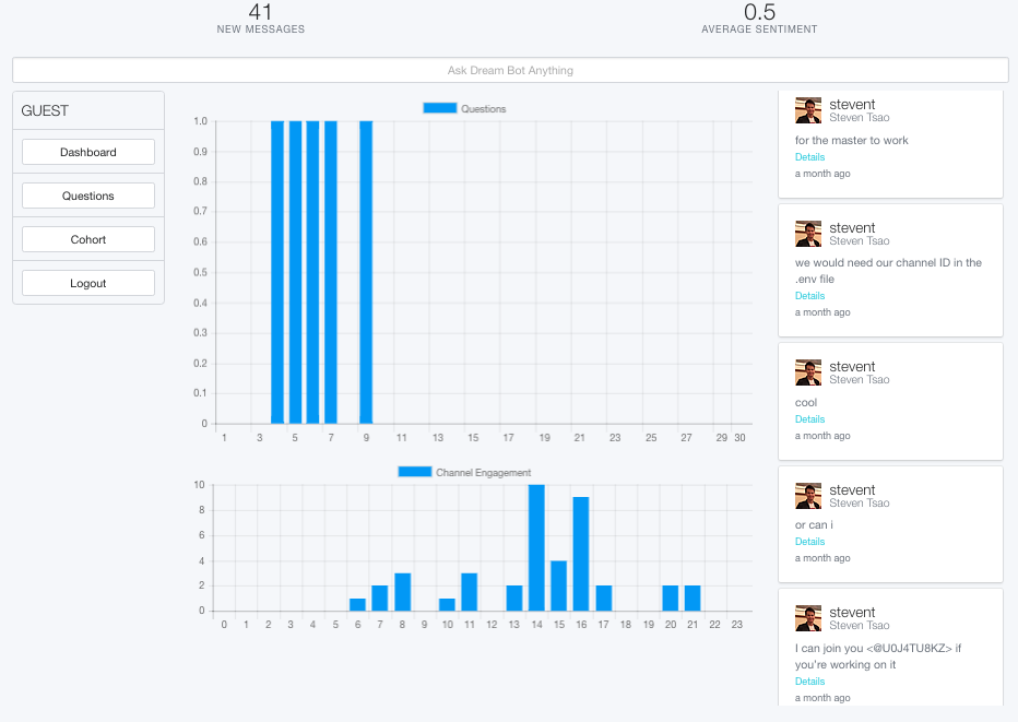 ##About Dreambot is a message analyzer that provides engagement analytics on any Slack channel.