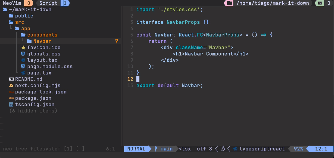 The React Component Generator is a Neovim plugin designed to streamline the process of creating React components by generating the necessary files and directory structure with a single command: