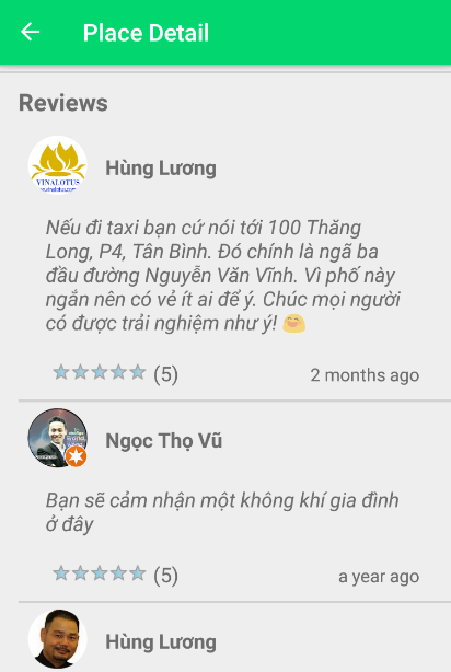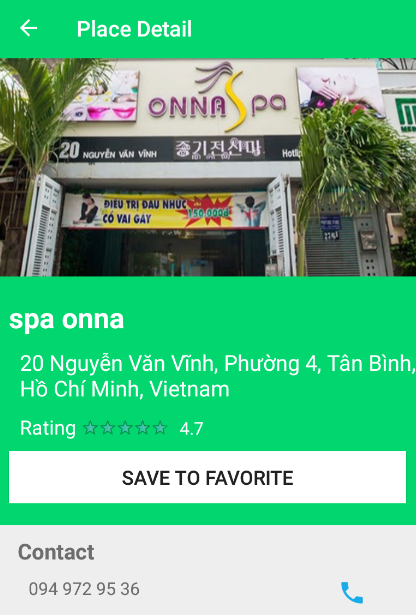 - Hiển thị thông tin về địa chỉ, số điện thoại, trang web, hình ảnh, thời gian làm việc, review, … của địa điểm mong muốn.