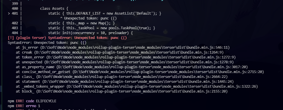 Hi! After typescript update, terser can't handle these es2022 static fields: