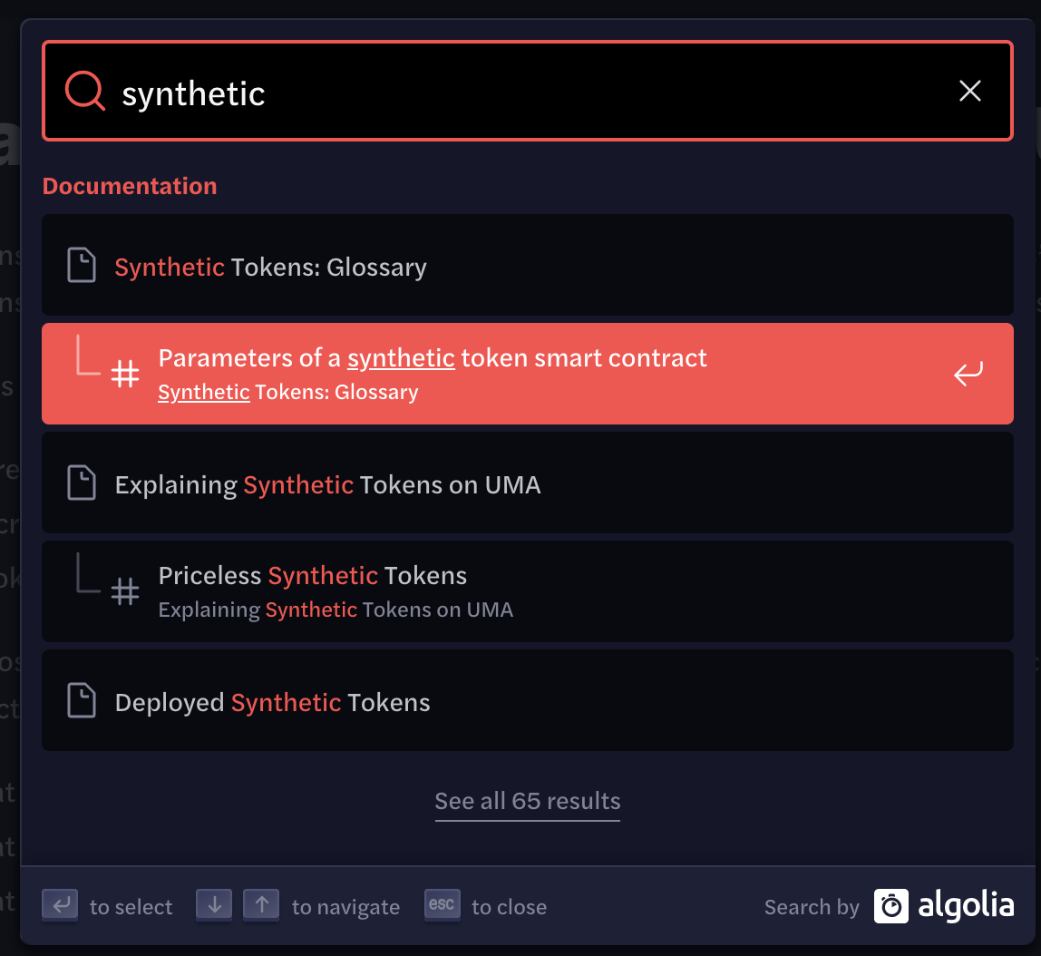 Currently, it looks weird to have so much purple and red in the search: <img width="574" alt="Screen Shot 2020-08-03 at 1 06 42 AM" src="https://user-images.githubusercontent.com/943555/89160250-c4859980-d53e-11ea-8bd5-b0db61d461c3.png"> We should make the colours a little bit more neutral. Ref: https://v2.docusaurus.io/docs/search/#styling-your-algolia-search