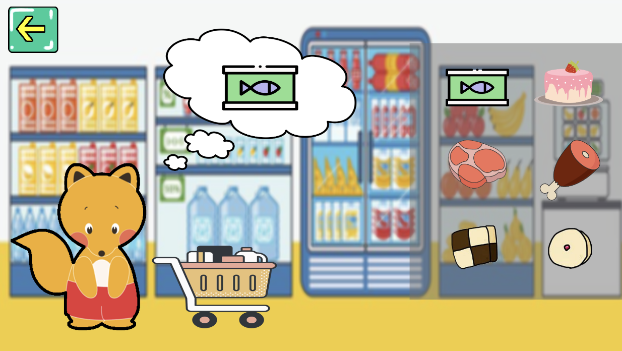 아이의 인지능력 향상을 위한 마트 장보기 게임이다. 화면 구성으로는 캐릭터와 카트, 캐릭터가 생각하는 물건이 뜨는 말풍선이 있다. 말풍선에 뜨는 물건을 카트에 담으면 되는 간단한 게임이다.