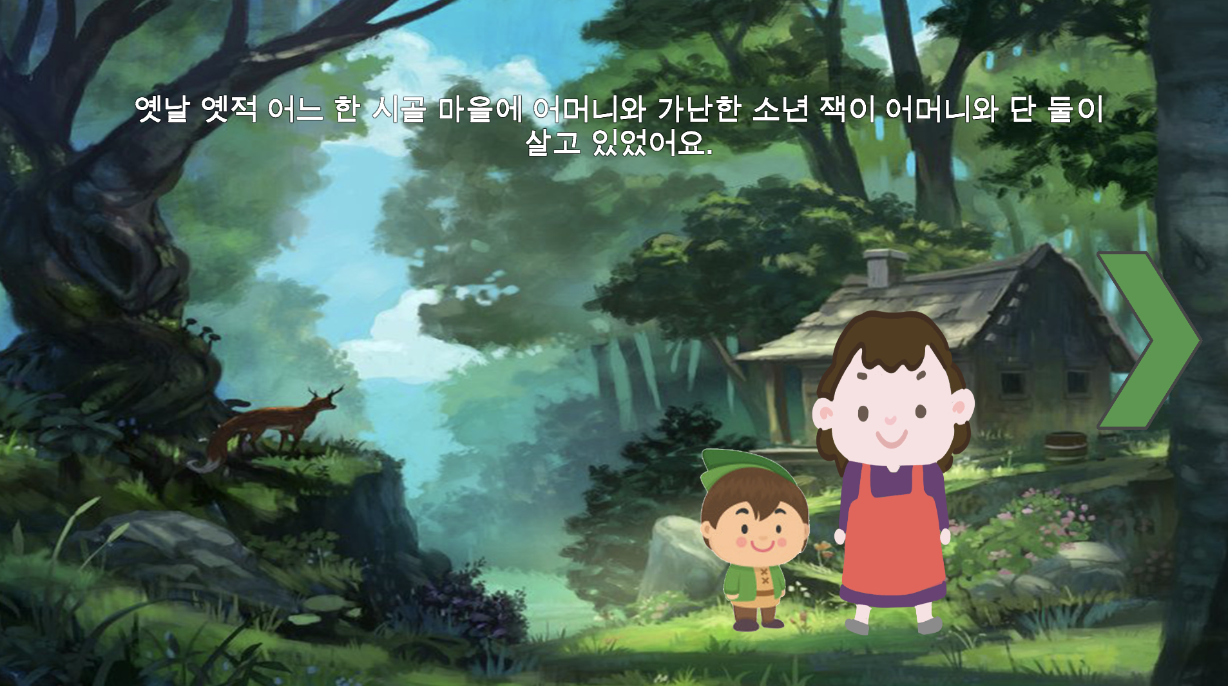 동화를 게임 어플에 녹여놓은 형태로써, e북 처럼 보호자가 아이에게 읽어주는 게임이다. 아이 혼자서 진행해도 되지만, 보호자가 동화 게임을 진행하는 것을 도와주어(읽어 주거나, 게임 진행에 도움을 주는 역할) 게임에 대한 보호자의 긍정적인 반응을 이끌어 내기 위한 게임이다.