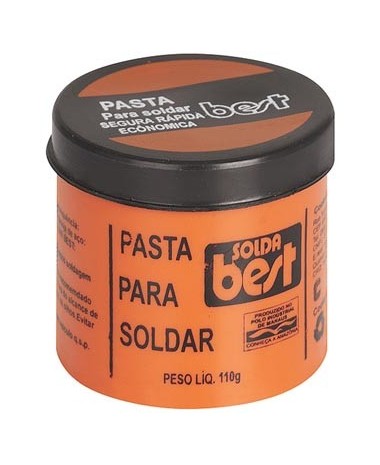 A pasta de solda é um material pastoso composto de diversas esferas pequenas de estanho, rodeado de fluxo de solda, conforme mostra a imagem abaixo. É importante separar fluxo de solda de pasta de solda. Na utilização da pasta de solda, descarta-se a necessidade do fio de solda.
