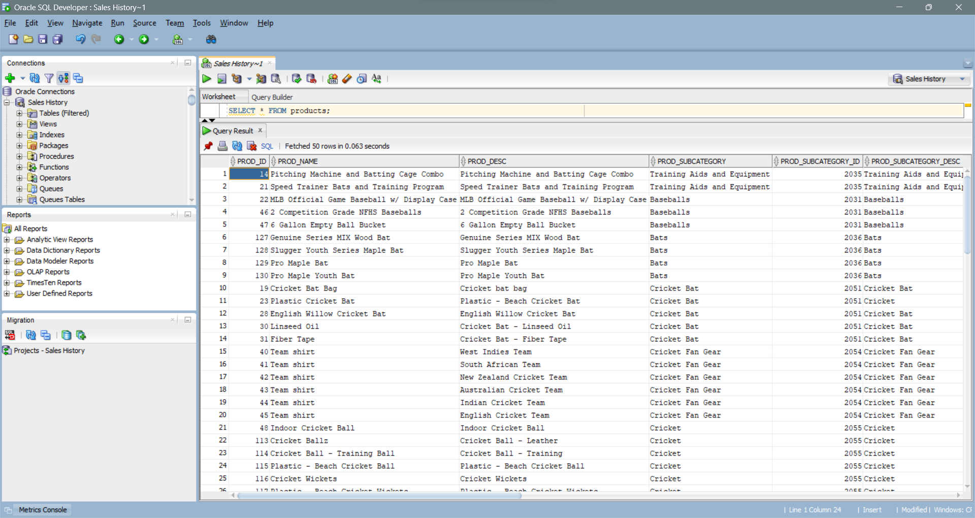 | 1 | VIEW | PRODUCTS_SALES | 72 | 3816 | 3900 (3)| 00:00:01 | | |