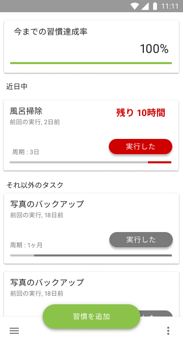HabitTimer 脱三日坊主! 習慣の名前とサイクルを設定して、その周期でタスクを実行し続けられるように通知するアプリ DEMO 完成予想図 https://www.figma.com/file/szd47QyvmYexFK9q6qDu7h/HabitTimer?node-id=0%3A1