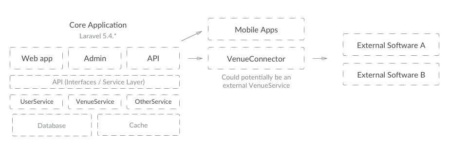 This is a laravel 5.4.* with a component structure and service layer. This structure provides clear separation of concerns. It forces components to interact only through defined interfaces, increasing both reliability and testability.