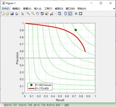 您好,我用您的python版本的eval测试了RCF的结果,同时也用matlab版本的eval做了对比,发现结果不一样的——  以上是python版本的  这个是matlab版本的 结果有误差这是一个问题,关键是OIS不可能会低于ODS的。 最后还是感谢您的python代码,根据您的代码思路,我也对matlab版本代码有了一定的了解