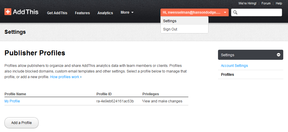 - While signed in to AddThis, go into your Account Settings.
