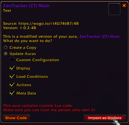 • If you previously downloaded an aura from Wago that is not a whole group and put it into one of your own custom groups, the Companion will not show any updates for it.