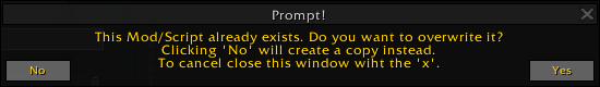 You will be prompted to either overwrite the existing version (Yes) or to create a copy (No). Cancelling the operation is possible by closing the prompt window by clicking on the 'X' on the top right.