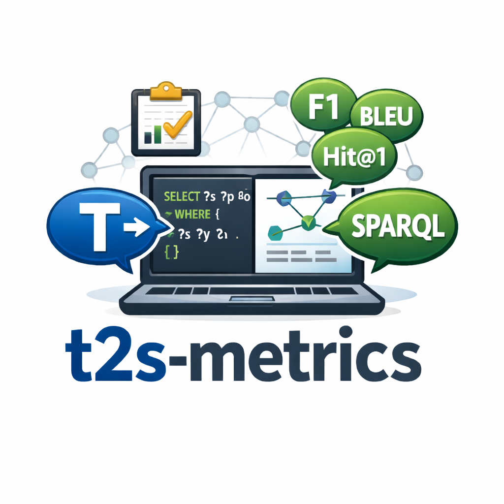 A small evaluation toolkit for text-to-SPARQL systems. It runs a configurable set of metrics over JSONL datasets and can execute queries against local RDF files or SPARQL endpoints.