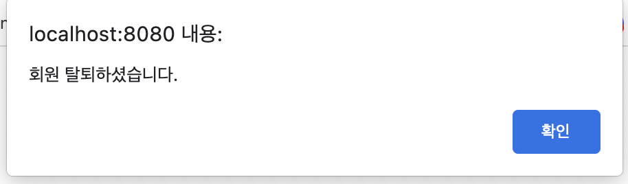 회원 탈퇴하기를 누르면 회원 목록에서 제거 시키고, 탈퇴 회원 목록에 추가해주어서 host 가 탈퇴 회원 목록 체크 시 확인할 수 있도록 한다. 메인 페이지로 다시 돌아가도록 한다.