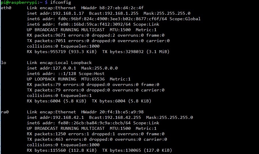 sudo ifconfig ra0 192.168.42.1