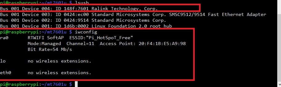 Plug your Wi-Fi antenna to your PC or Raspberry Pi and write this command to check if you have Clone MT7601.