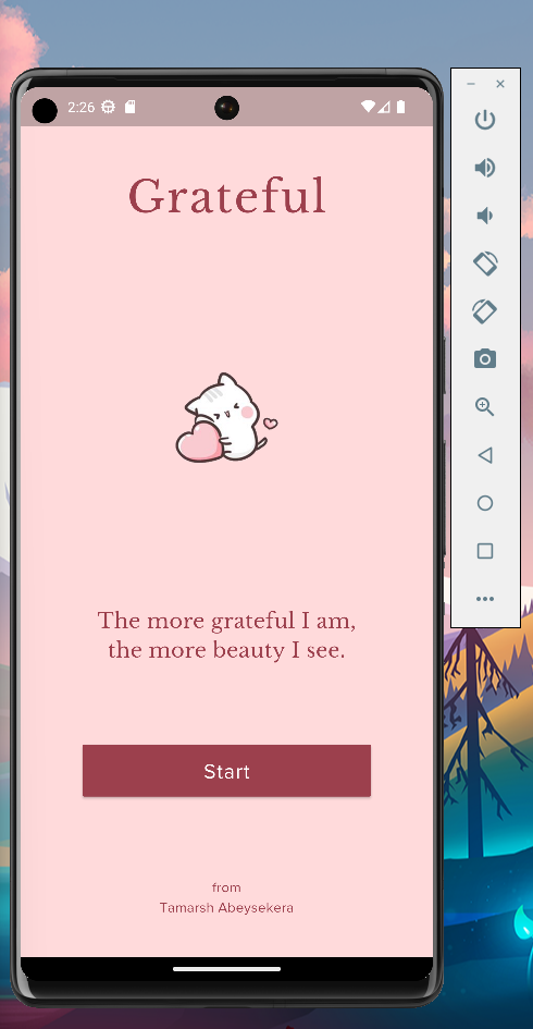 directory and enter the command flutter run. This will launch the Grateful
