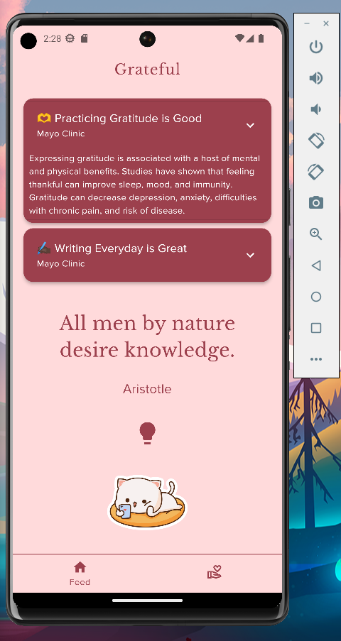 Grateful is a mobile application for Android users to practice daily gratitude by writing every day.