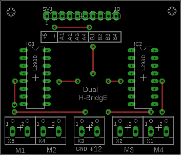 Simple Dual CNC driver (or 4 DC motors) useing 2 L293 chip This driver can be used to control 2 Bipolar stepper motors (4 wires motor) or it can be used to control 4 DC motors Included example cods to run the motors (written in both ANSI-C"ATmeal Studio" and Arduino) All the files (schematics, PCB) designed by EagleCAD 7.3 Licence: Creative common CC-SA-NC