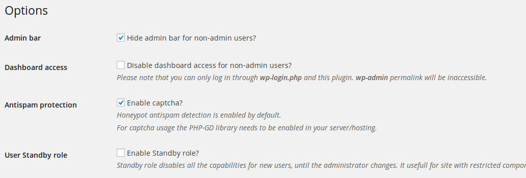 In this setting page you can also find the way to enable/disable the differents options of the plugin, like below: