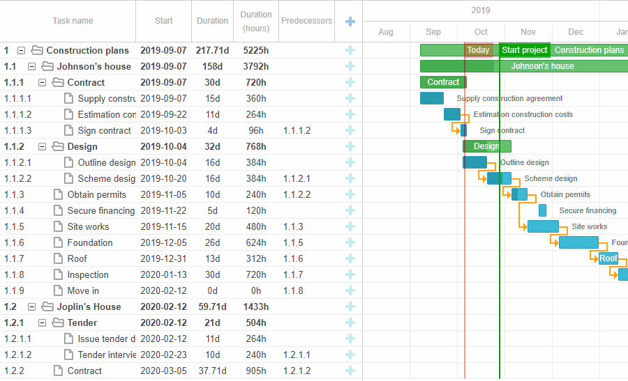 {id: 2, text: "Task #1", start_date: "2019-08-01 00:00", duration:5, parent:1, progress: 1},