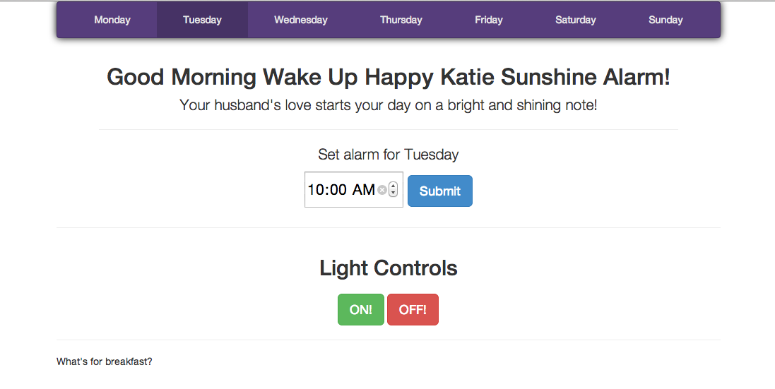 This project takes a Raspberry Pi and, web-enabling it, turns it into an alarm clock. The Pi is attached to a PowerSwitch Tail and controls a light in place of an audio-based alarm to wake us up.