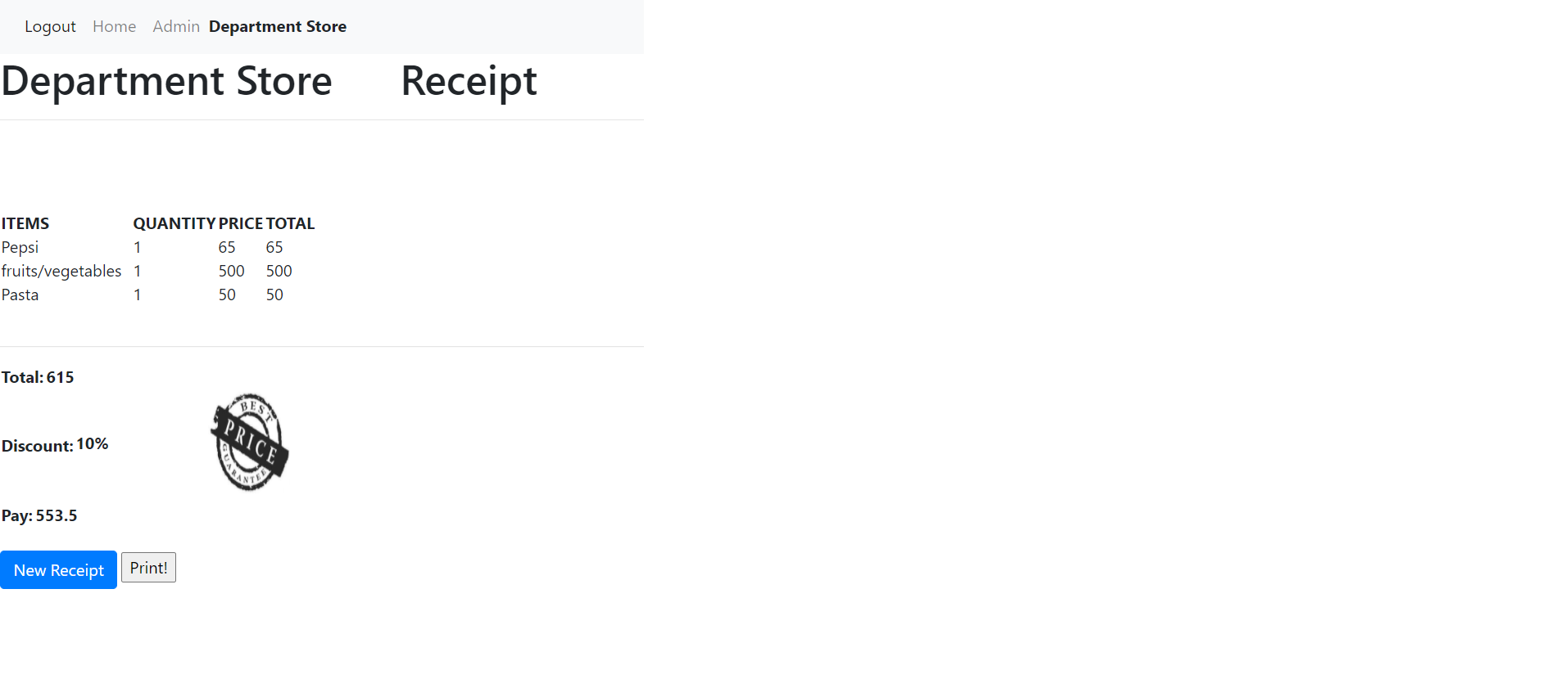 A webapp for department stores that stores the inventory with images and details (like price, quantity remaining) of items. Manager can update the inventory on website and cashier of department store can make receipt.