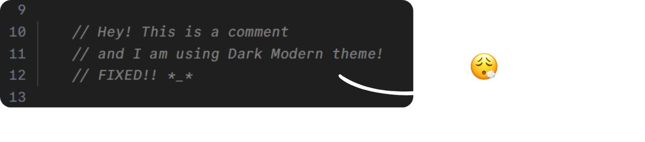 So the first thing I did was replace it with a soft italic gray — comments should whisper, not shout.