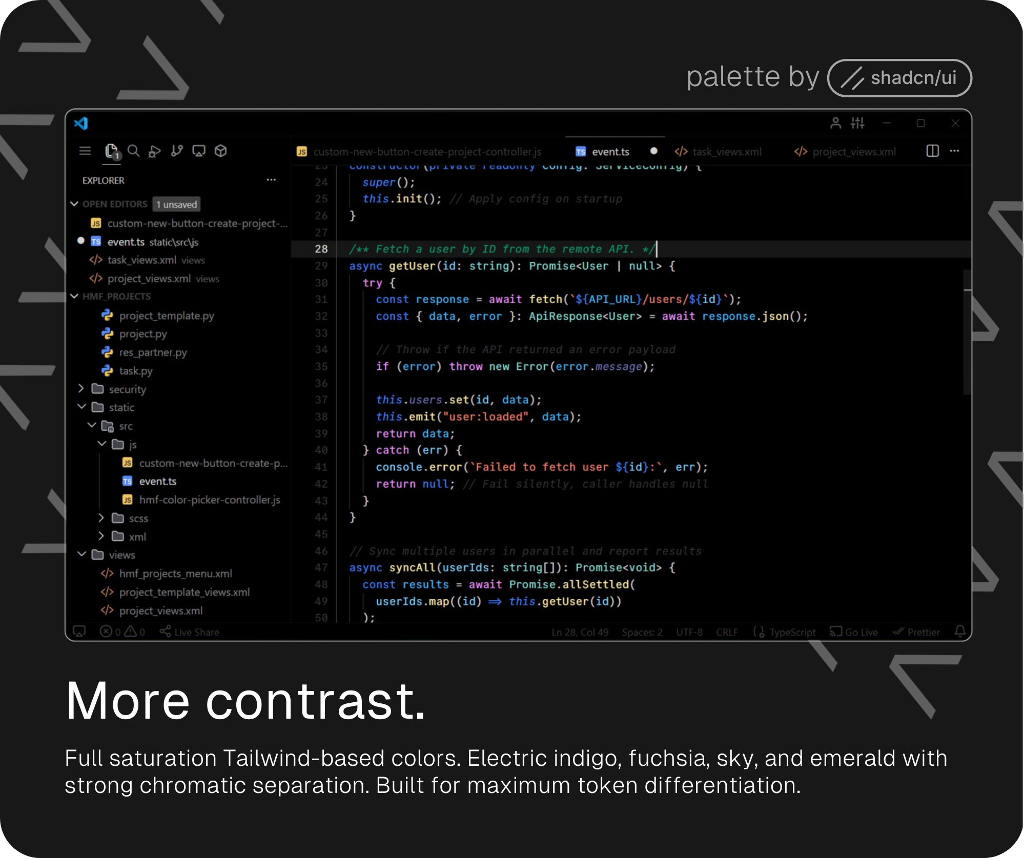 Then came a High Contrast variant built entirely on Tailwind colors used by shadcn-ui, with strong chromatic separation for maximum token differentiation.