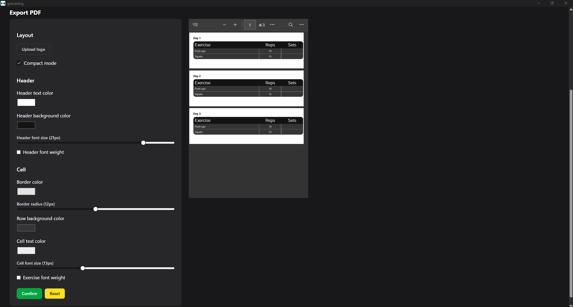 Gotraining is a simple application that allows Personal Trainers to build workout plans for their customers without the hassle of learning complicated applications to generate PDFs. This applications allows new Personal Trainers to create PDFs without being charged and it's ADS FREE!