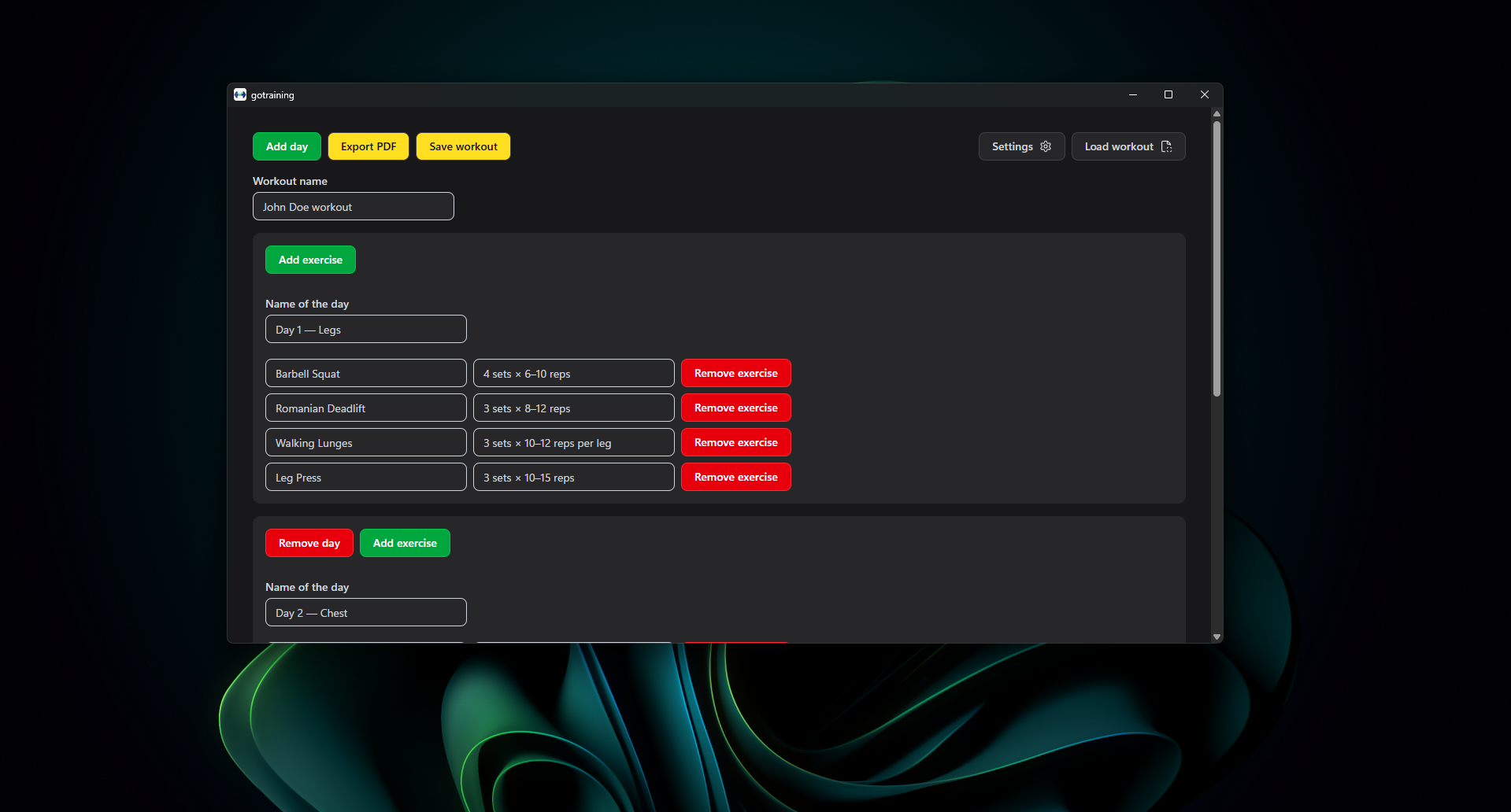- Workout plan manager: create, edit and delete plans in just a few click.