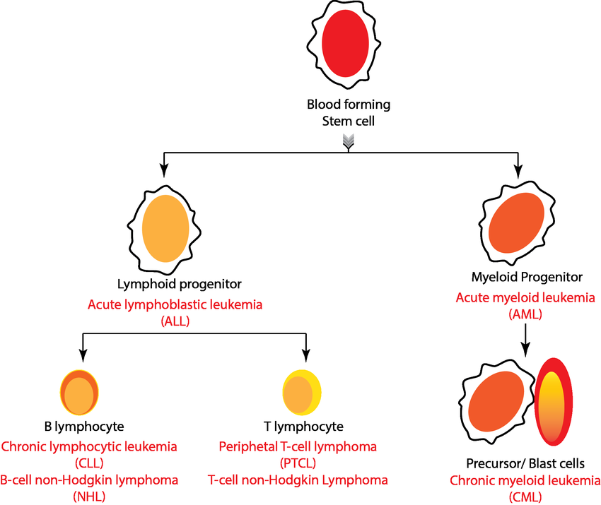 The former comprises hematogenous, and the latter is the ALL group with three subtypes of malignant lymphoblasts: