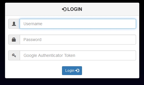 • User's database management (restricted to users with the "admin" privilege) : add a user / delete a user / delete the whole database / change any user's password / renew any user's GAuth secret / show any user's secret as a QRCode