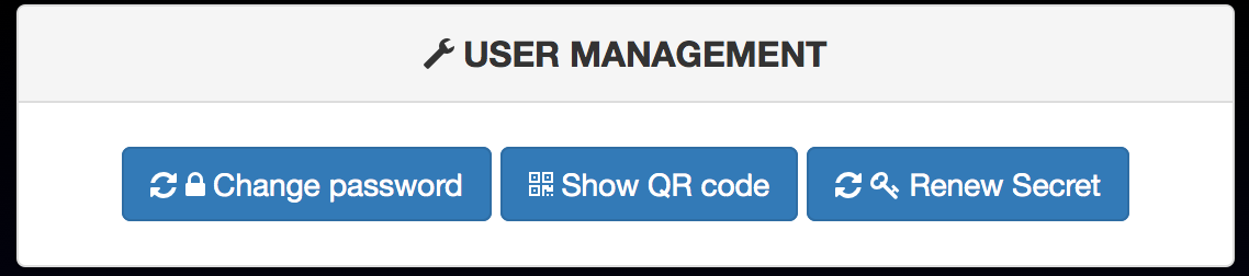 • Each user can also manage his own account : change his password / renew his GAuth secret / show his current secret as a QRCode