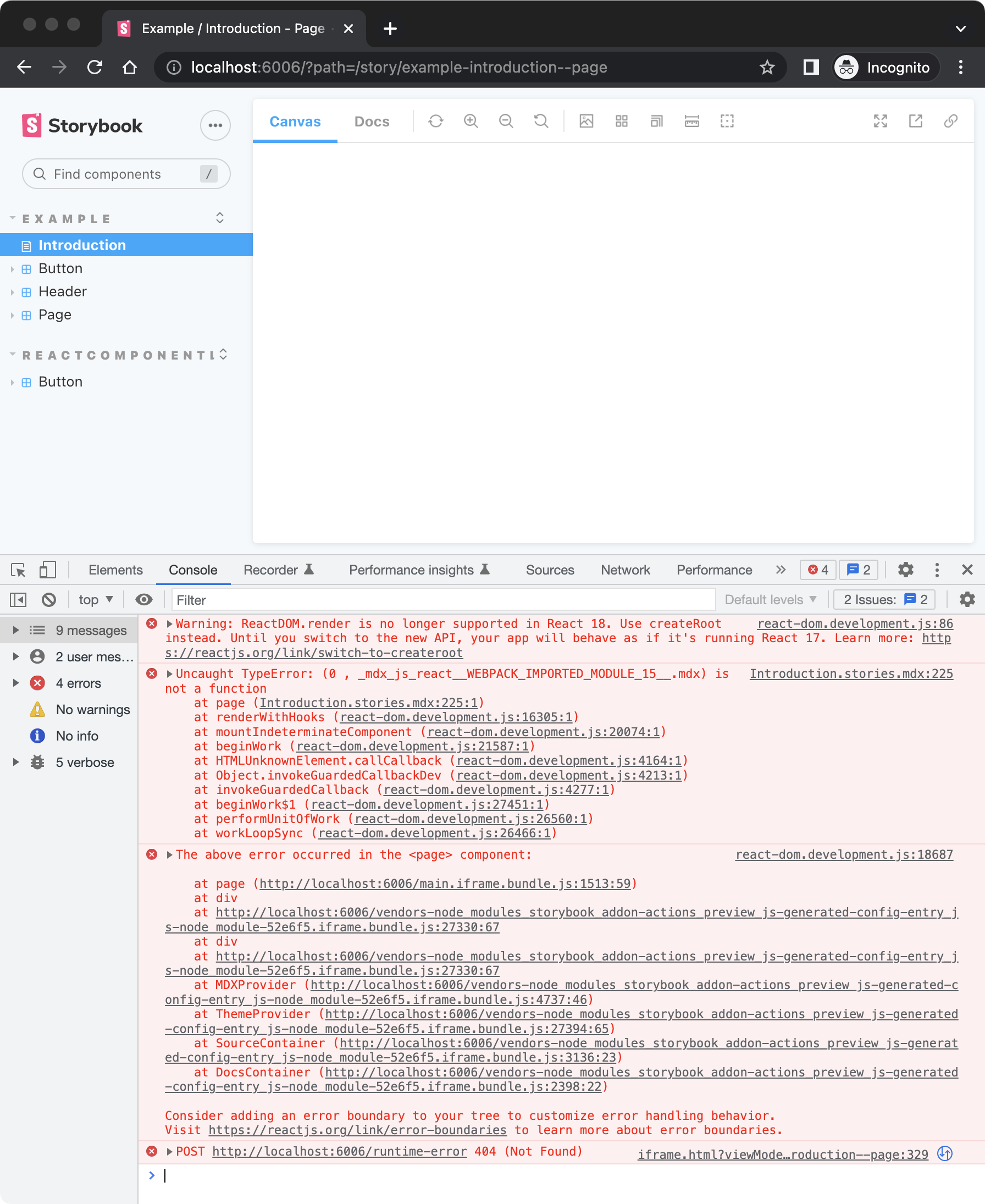 This seems to be coming from MDXv2 support not set up properly. Following the instruction in: https://gist.github.com/shilman/6ff2d7e18db8846e8fc552fb432ae4f6