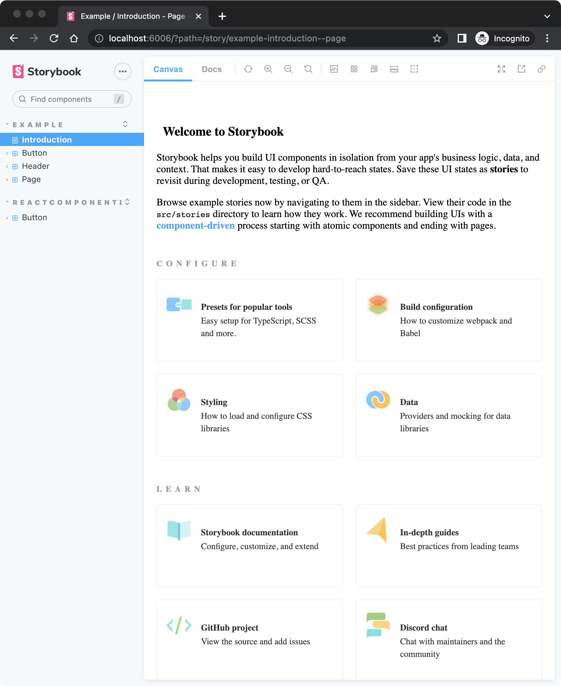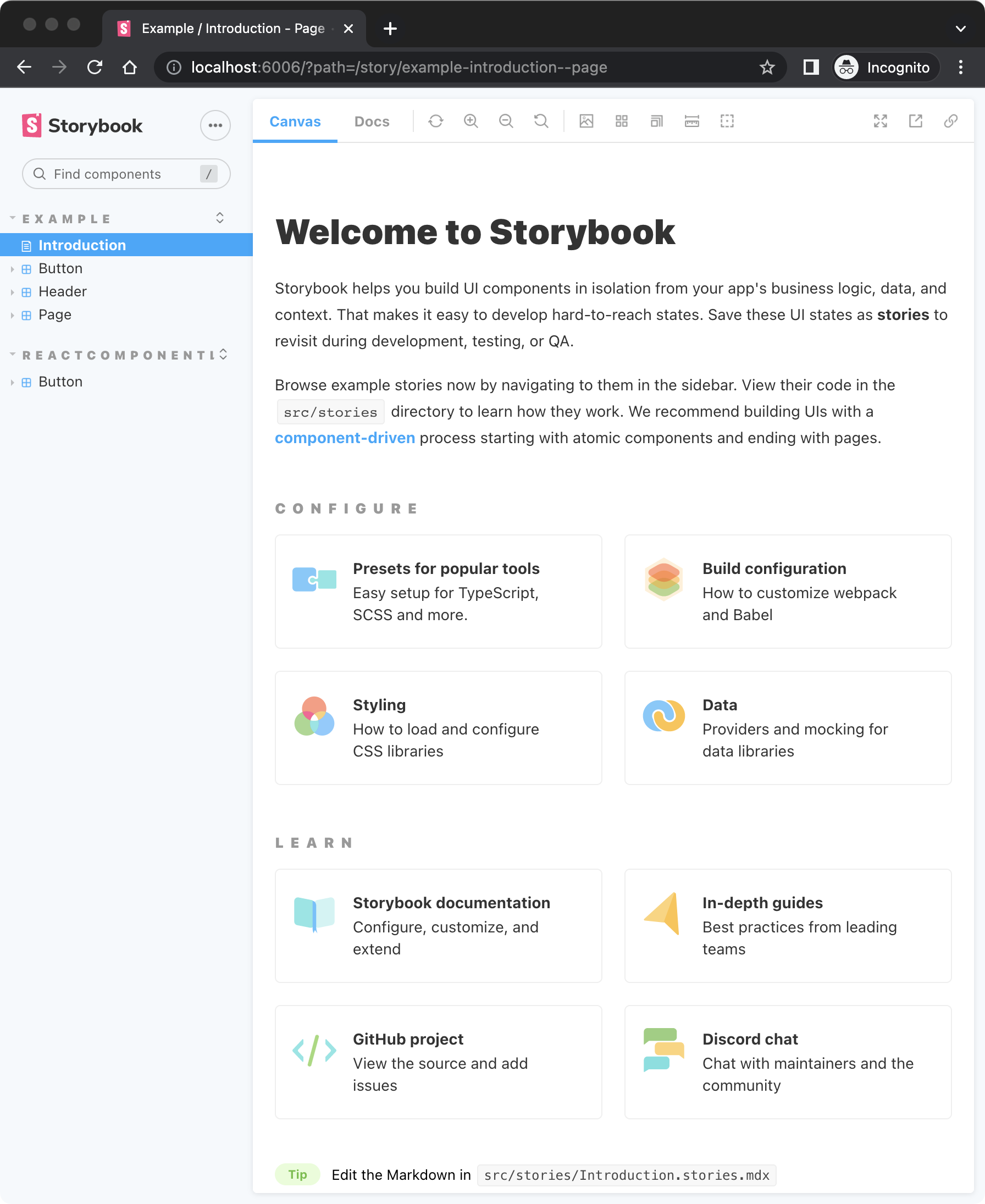 The introduction page in storybook seems to be broken and always rendered as blank: