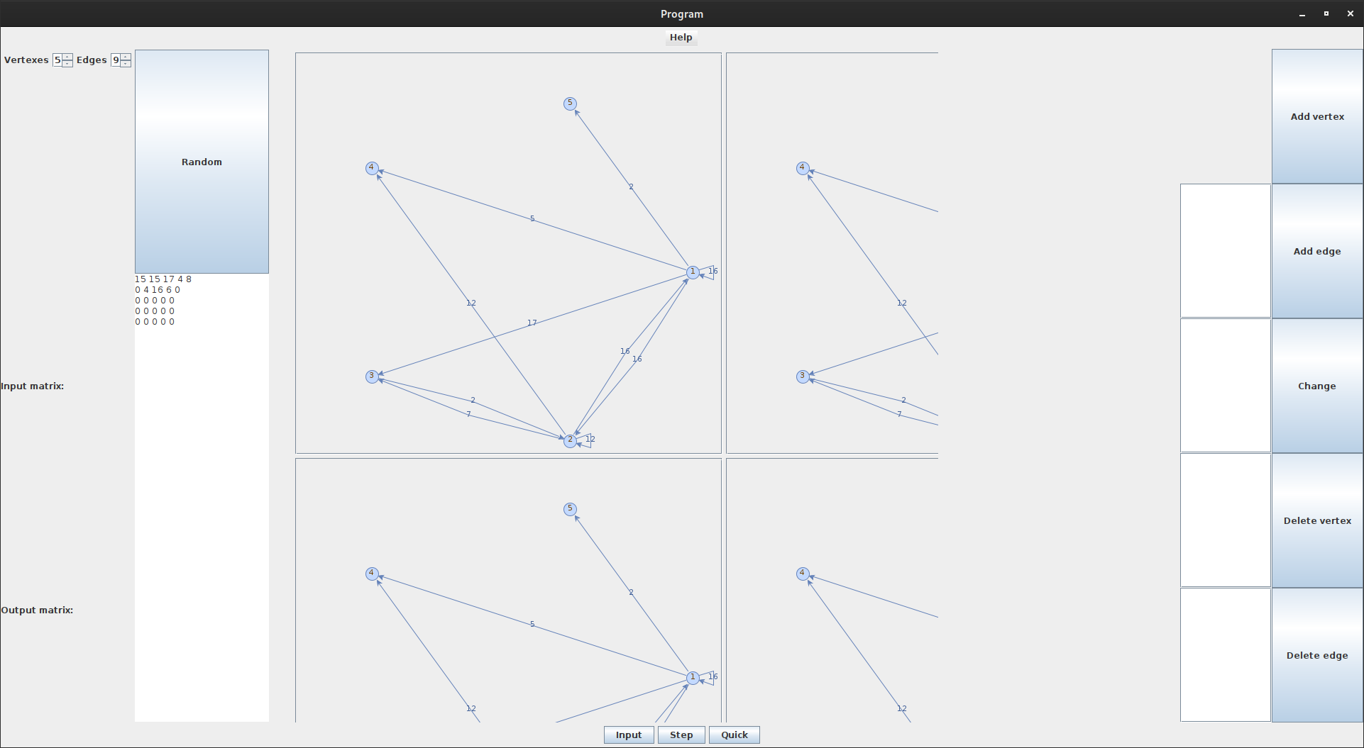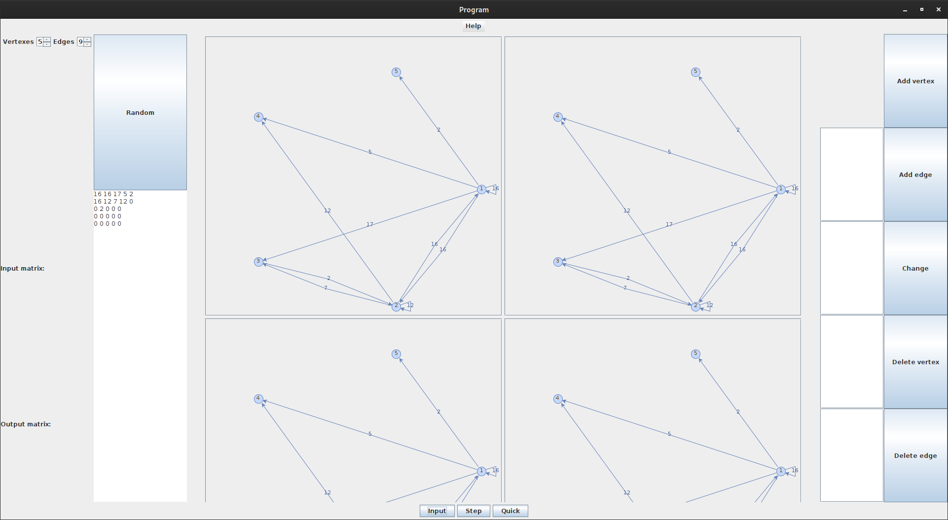 - Визуализатор позволяет, например, создать отдельное обособленное ребро, но при этом к графу оно не будет иметь отношения. Удалить его нельзя.