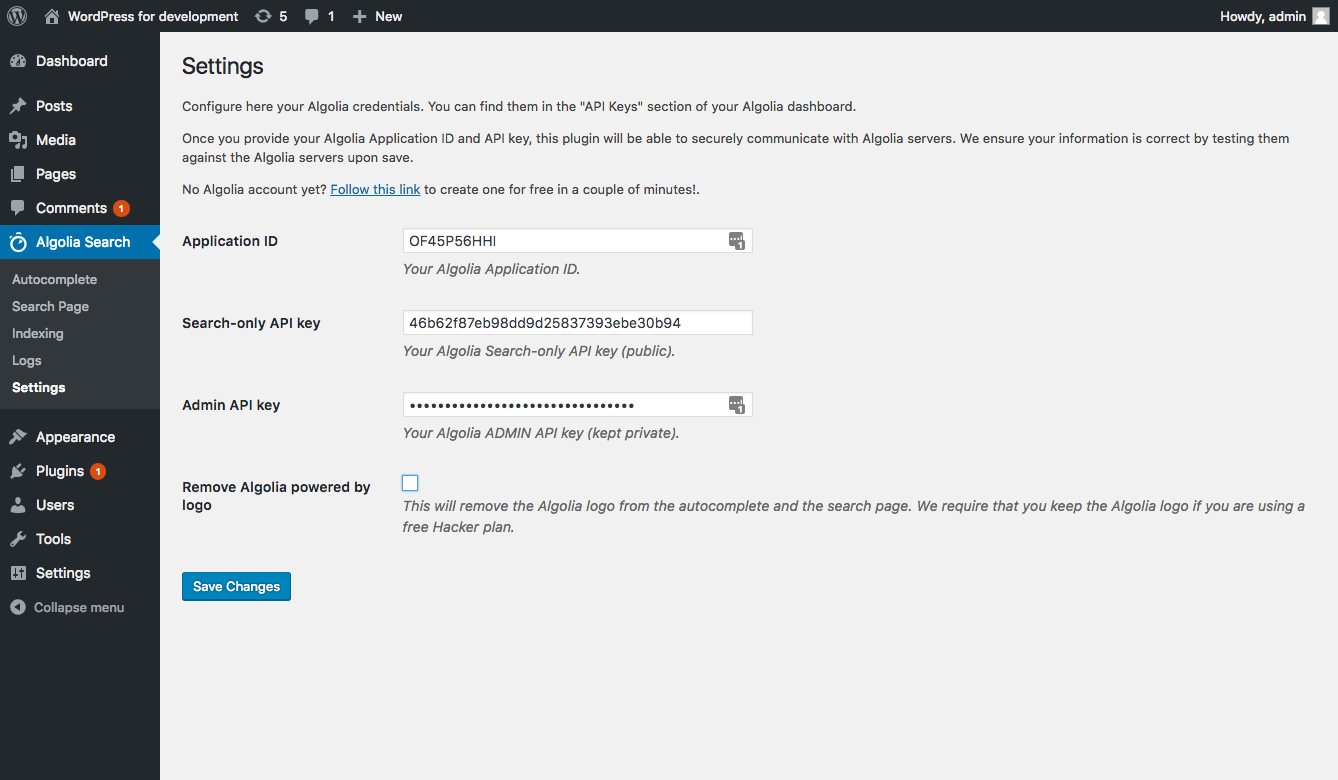 TL;DR: This plugin is no longer supported. Please use our API client guide instead https://www.algolia.com/doc/integration/wordpress/getting-started/quick-start/.