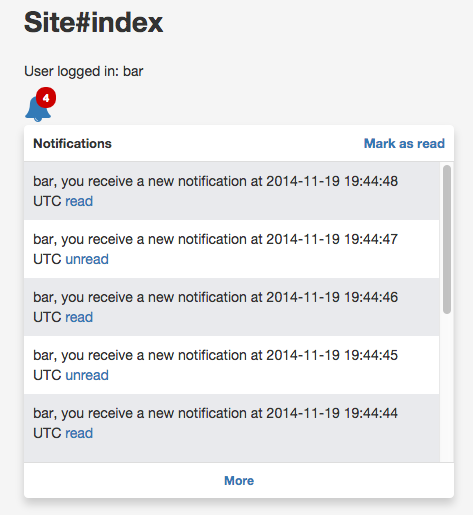 #notifly-notifications-container, this element will contain all notifications (_notification.html.erb) rendered by_index.html.erb - Next page link: this link will append the next notifications page to the