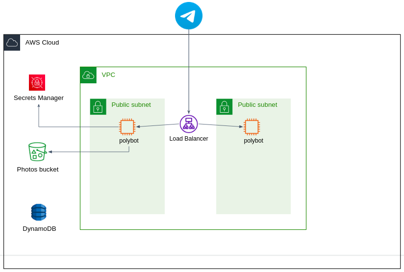 In this project, you'll deploy your Polybot Service on AWS following best practices for a well-architected infrastructure. You'll utilize the majority of the AWS resources covered in the tutorials, including EC2, VPC, IAM, S3, SQS, DynamoDB, ELB, ASG, Lambda, CloudWatch, and more.