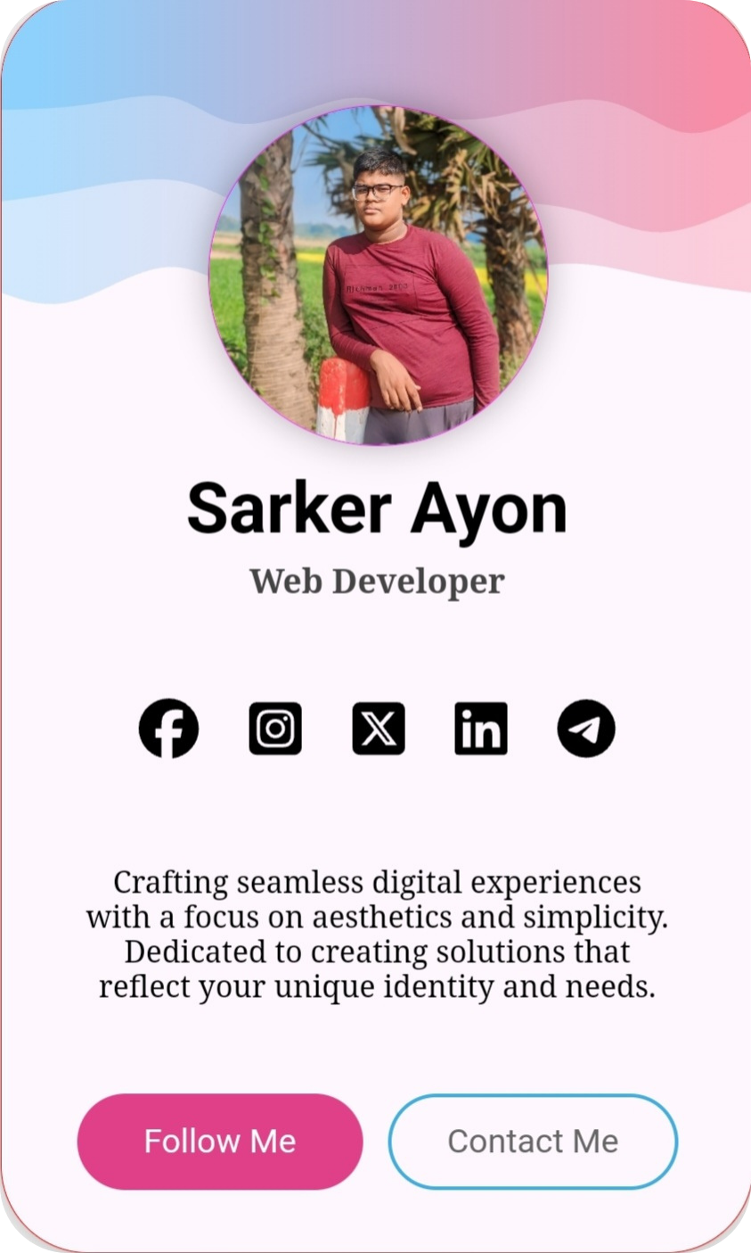 Our profile card template offers a sleek and modern design to showcase personal or professional information on any website. Itβs perfect for developers, designers, and anyone looking to make a strong first impression online. This template is fully customizable and easy to integrate into your projects.