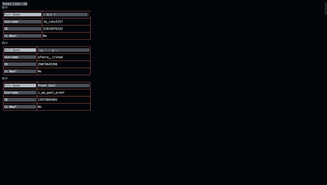 - Post and Reel Analytics: Fetch likes on posts and reels to view the list of users who have interacted with the content.