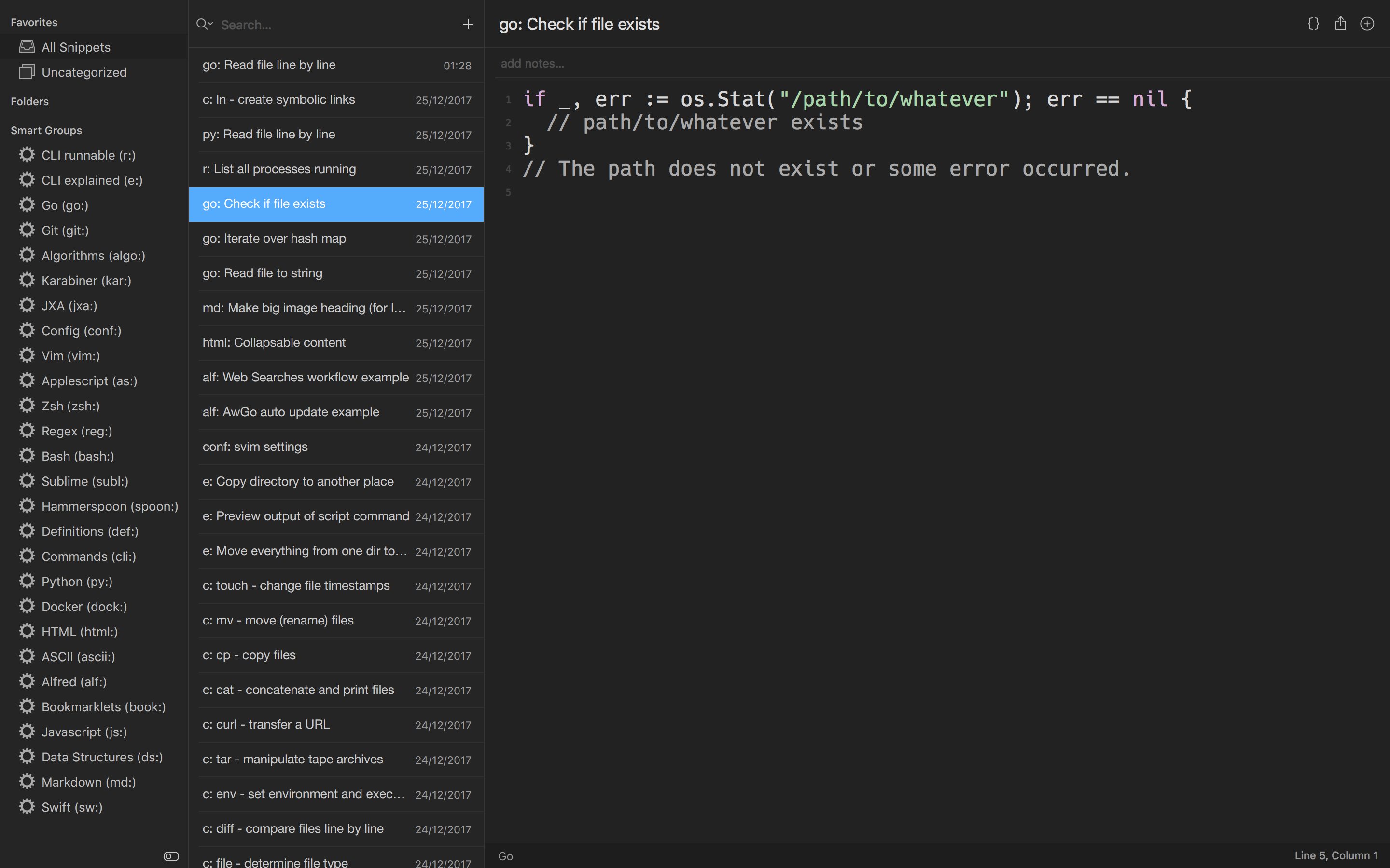 - A very powerful code snippet manager that I have intergrated very heaviliy in my workflow, with recent addition of its own alfred workflow, retrieving the snippets that you need it staggeringly fast.