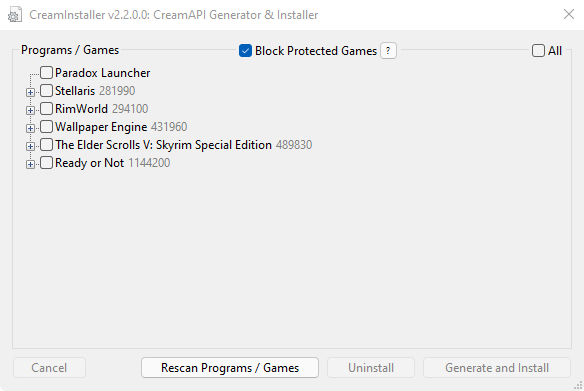 - 自动卸载 Koaloader、CreamAPI、SmokeAPI、ScreamAPI、Uplay R1 Unlocker 和 Uplay R2 Unlocker 的 DLL 和配置。
