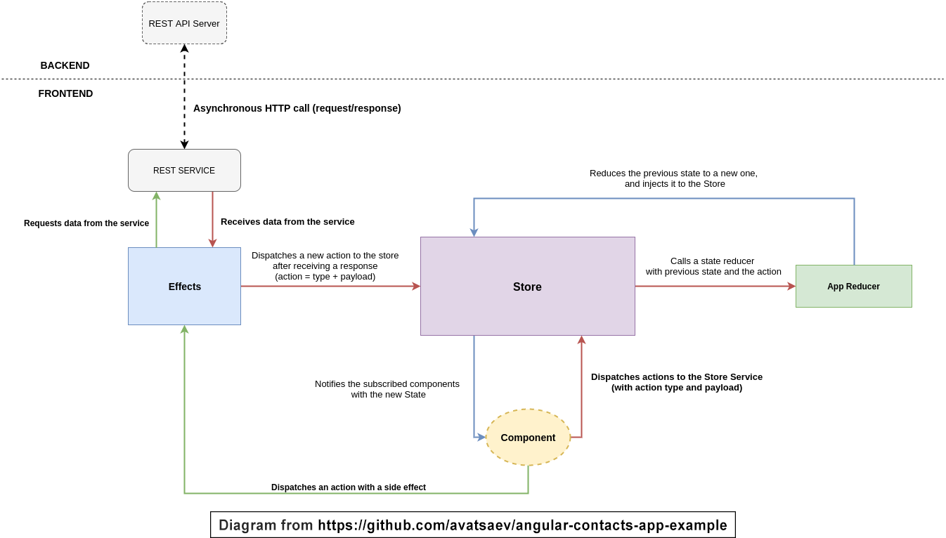 This application uses @ngrx/store to manage application state, and @ngrx/effects to manange side effects (http+sockets), It also uses NgRx fractal state management to leverage lazy loading of reducers and effects.
