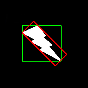 cv.drawContours(img,[box],0,(0,0,255),2)Both the rectangles are shown in a single image. Green rectangle shows the normal bounding rect. Red rectangle is the rotated rect.