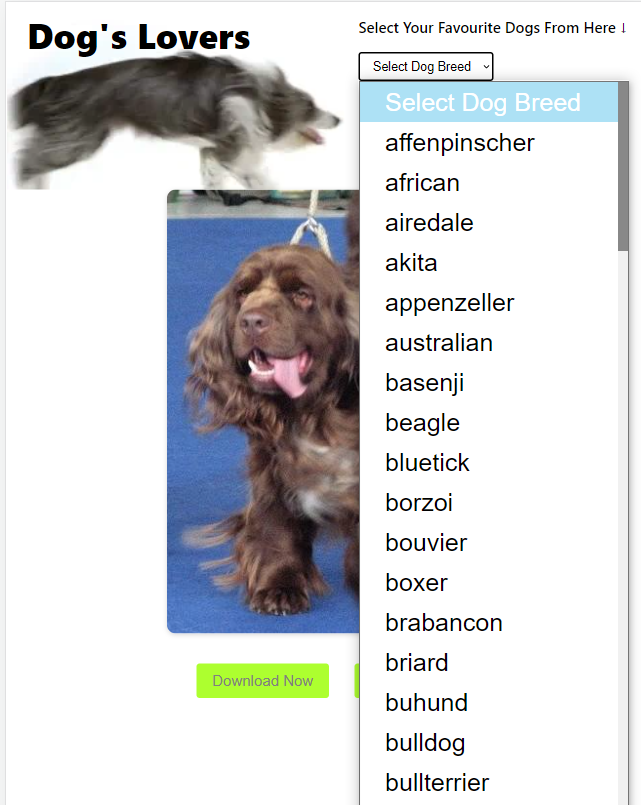 This project is for people who loves dogs and their pictures. From this website you can download all most all dog breed images. They looks very cute in images.