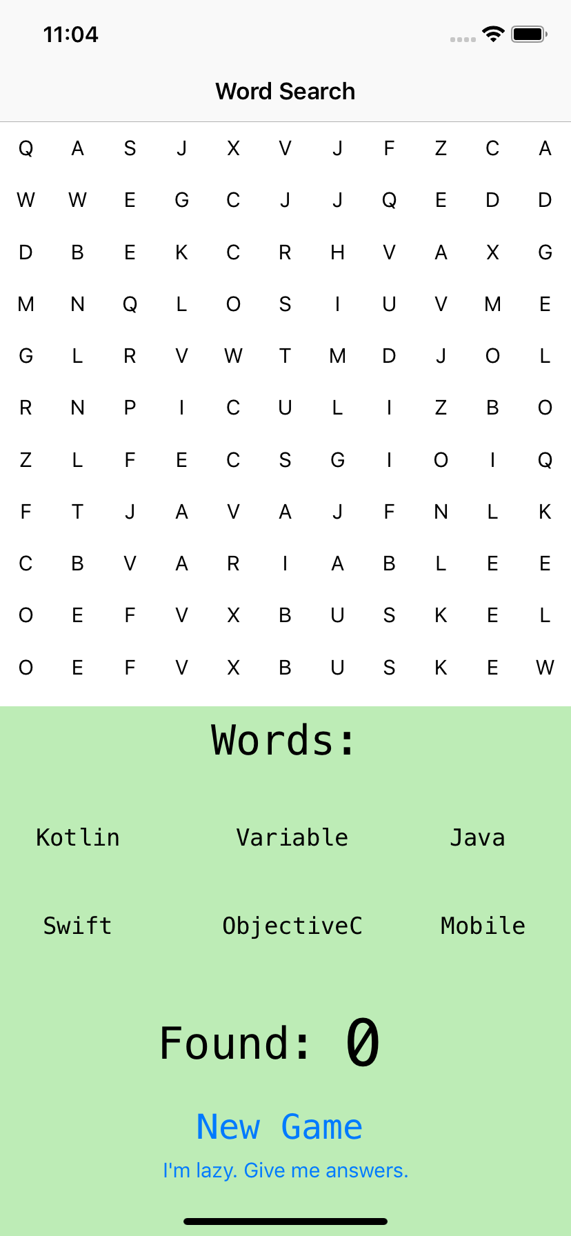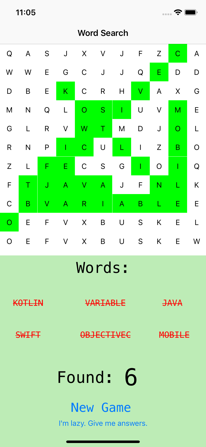 - Find the following 6 words: Swift, Kotlin, ObjectiveC, Variable, Java, Mobile